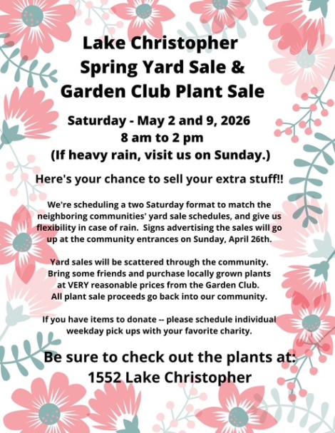 The Lake Christopher Homes Association (LCHA) consists of every person who owns a lot in Lake Christopher. This association of homeowners, which is a corporation, has existed since 1974. There is a